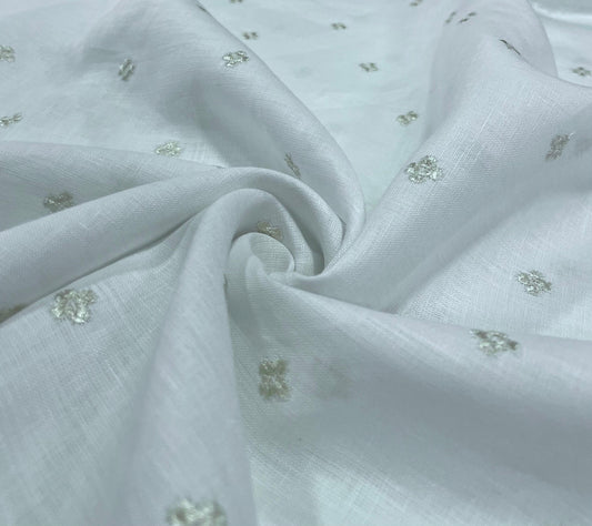 White Allover Printed- Dyed Premium Linen Fabric LT-GMP-037