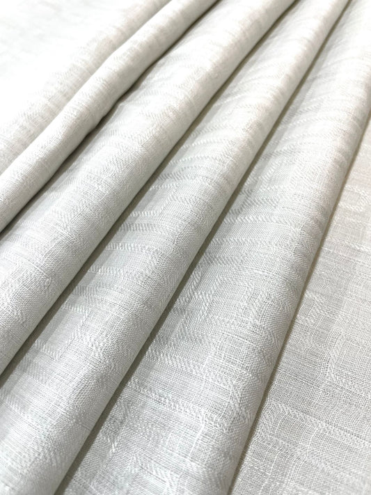 Men's Premium White Linen Cotton Self Design Shirting Fabric Crafted for the modern gentleman, our blends the crisp elegance of linen with the soft comfort of cotton. The subtle self-design adds a refined texture, making it ideal for formal and smart-casual shirts.