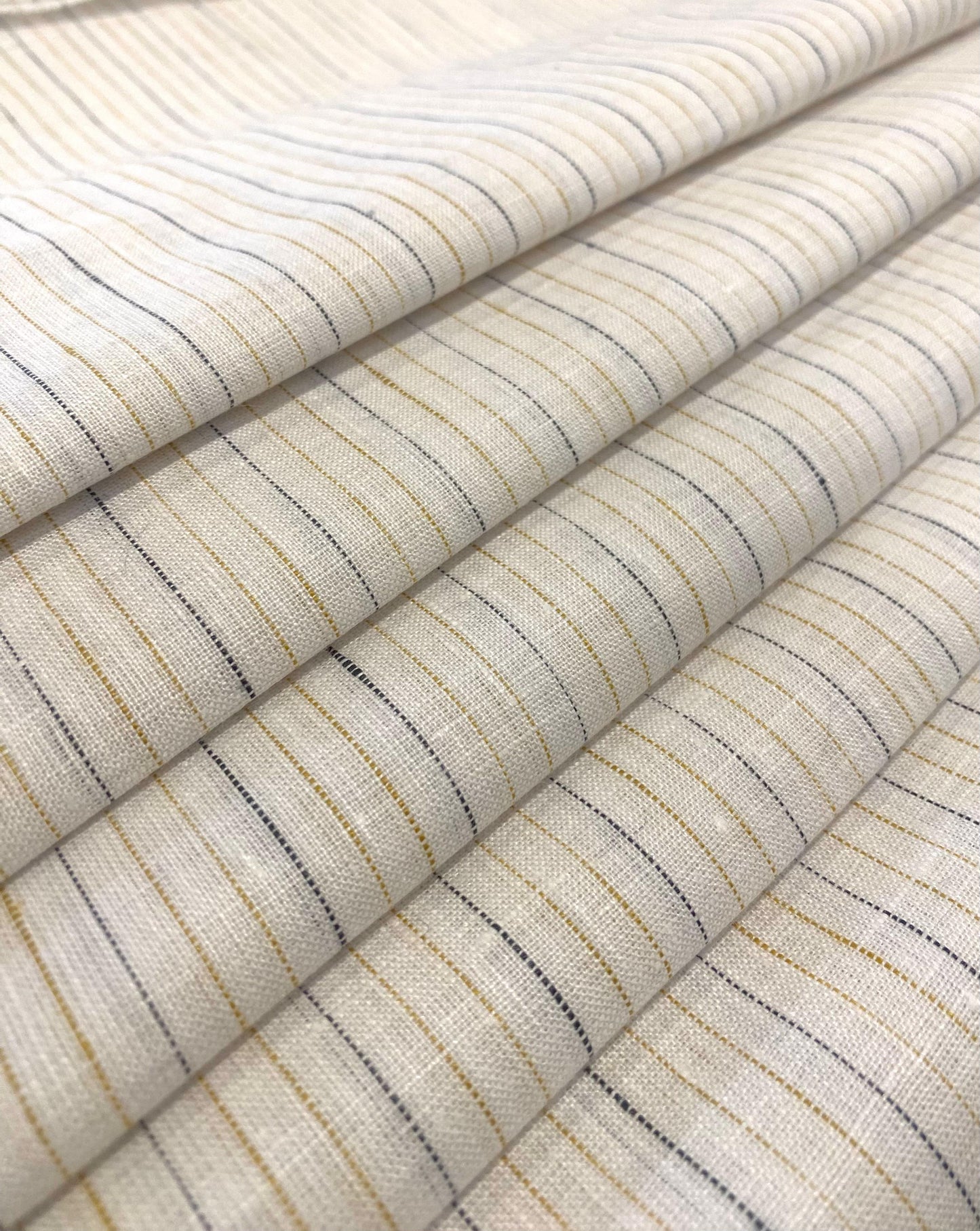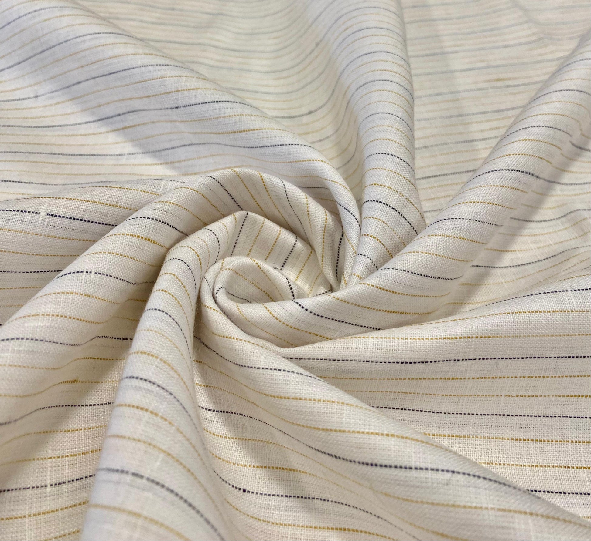 White Golden Yellow with Blue Stripe - Dyed Premium Linen Fabric BCF- 26389