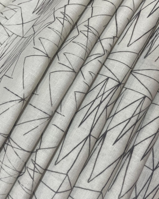 Grey White Geometric Allover Digital Printed - Dyed Premium Linen Fabric BC-ITN-630178 (NEW)