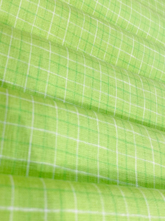 Bright Green Checked - Dyed Premium Linen Fabric RL-563