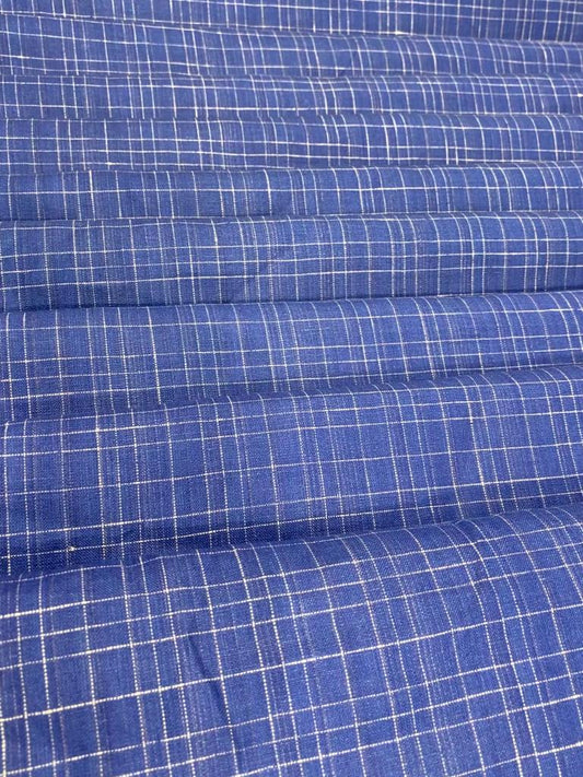 Breeze Blue Checked - Dyed Premium Linen Fabric BCF-26327