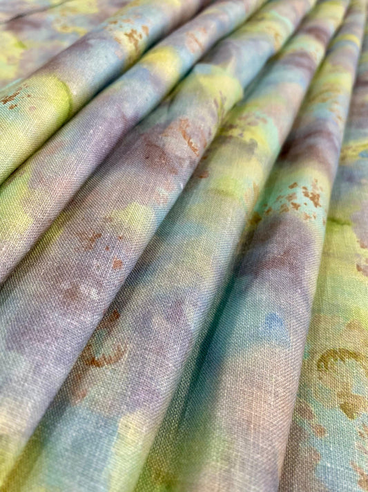 Blue-Purple-Green Digital Printed - Dyed Premium Linen Fabric BCH-142