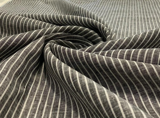 Charcoal Grey Stripe - Premium Dyed Linen Fabric Aries-04615-Y