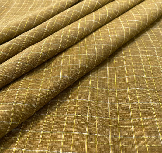 Golden Brown Checked - Dyed Premium Linen Fabric RL-786