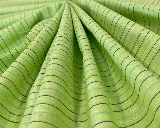 Golden Green Stripe - Premium Dyed Linen Fabric LCD-037