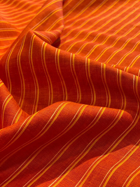 Sepia Orange Stripe - Premium Dyed Linen Fabric LCD- 197 (NEW)