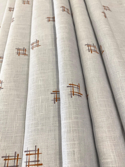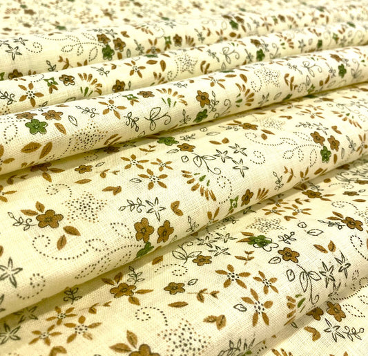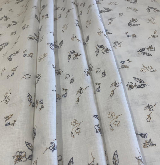 White/Khaki Leaf Printed Fabric - Dyed Premium Linen Fabric LS-073