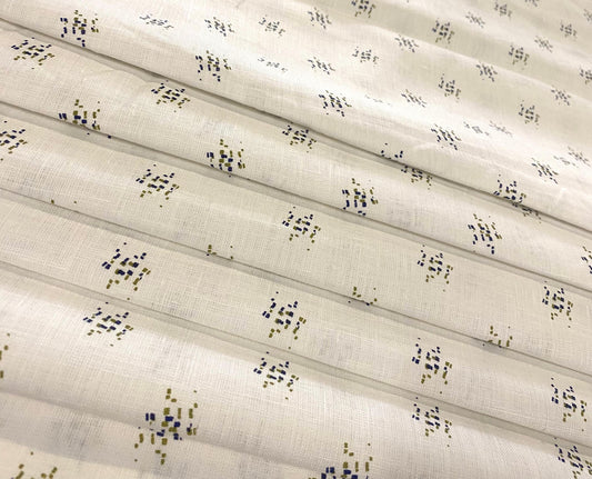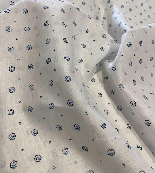 White Allover Printed- Dyed Premium Linen Fabric LT-GMP-037