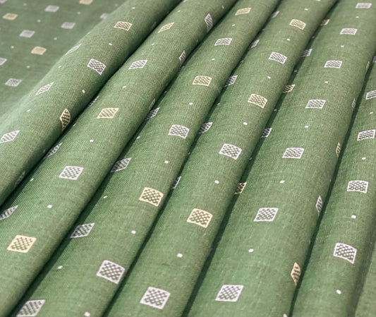 Bottle Green Allover Printed Fabric - Dyed Premium Linen Fabric CNC-LFJW-36217