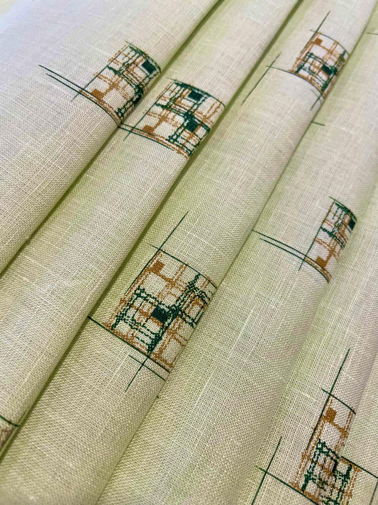 Green Patina Pattern Digital Printed - Dyed Premium Linen Fabric BCH- 620417