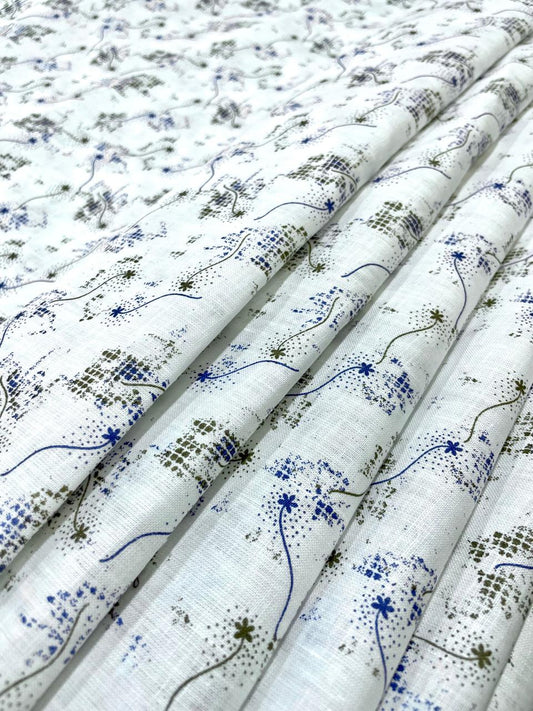 White Blue Printed Fabric - Dyed Premium Linen Fabric LS-055