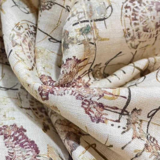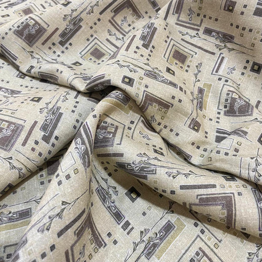 Sandal Brown Allover Digital Printed - Dyed Premium Linen Fabric BC-ITN-630144 (NEW)