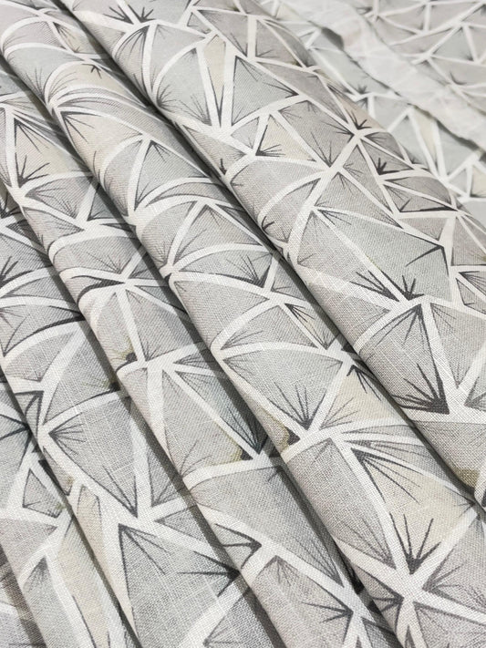 Grey White Geometric Allover Digital Printed - Dyed Premium Linen Fabric BC-ITN-630178 (NEW)