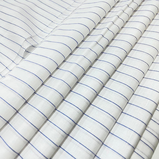 White with Blue Stripe (80's) - Dyed Premium Linen Fabric BC-AVS-80059 (NEW)