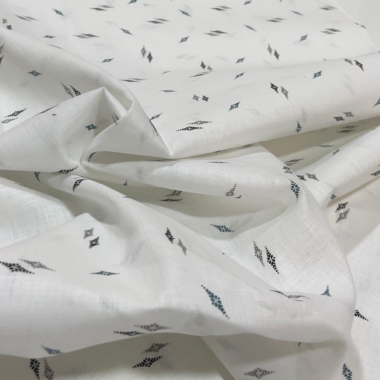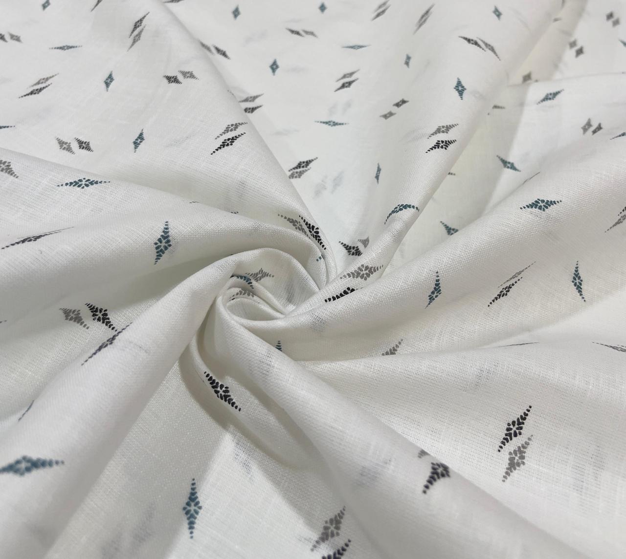 White Allover Printed- Dyed Premium Linen Fabric LT-GMP-14
