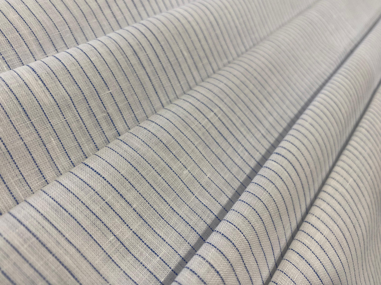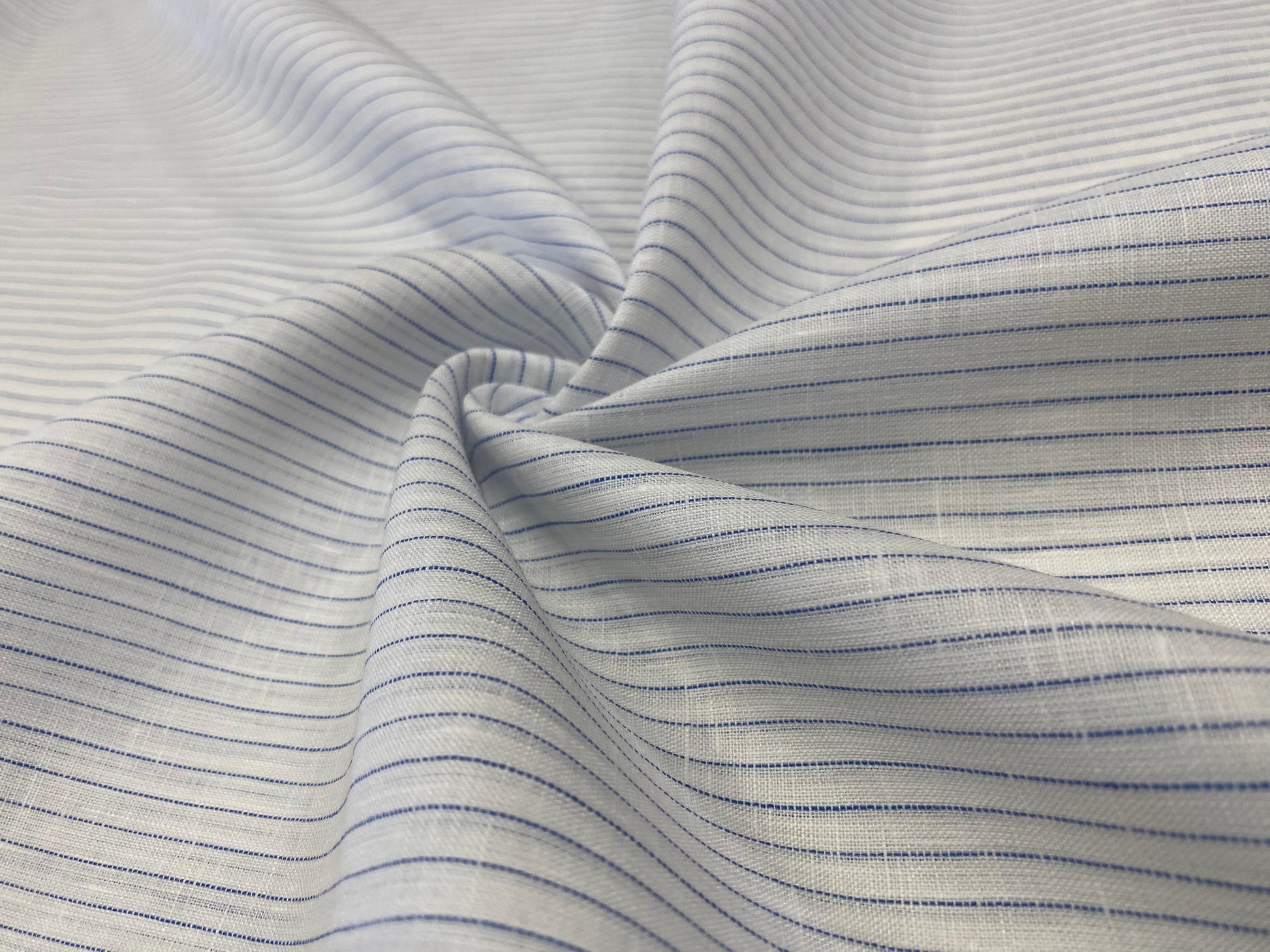 White Blue Dotted Stripe - Dyed Premium Linen Fabric LFK- 19330-101