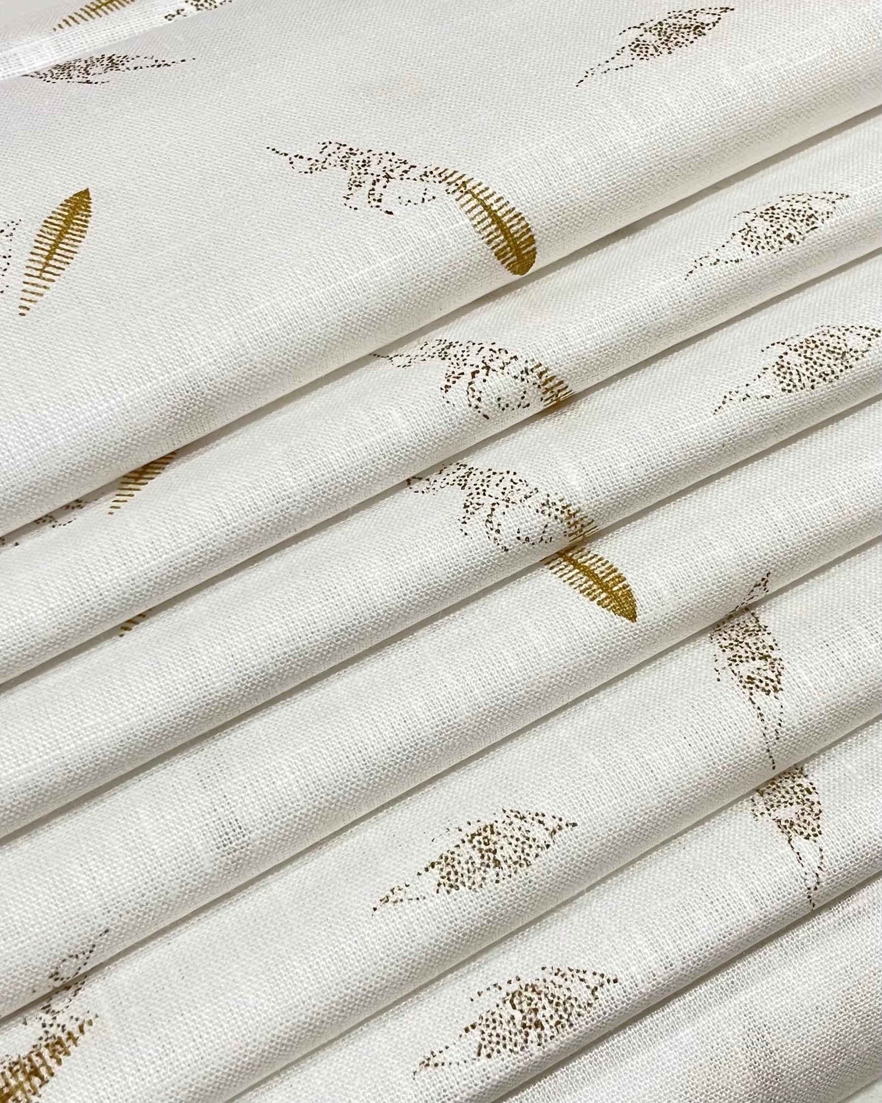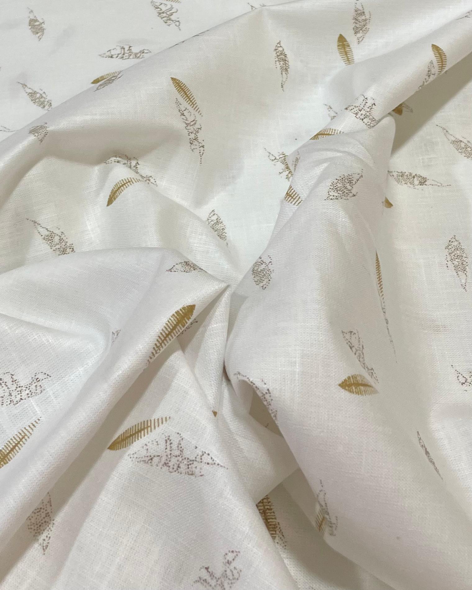 White - Yellow Leaf Aesthetic Allover Print - Korean Linen Fabric BC-WC-KL-260851