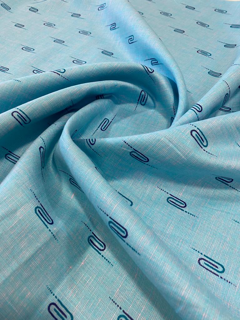 Blue Printed Fabric - Dyed Premium Linen Fabric LB-005