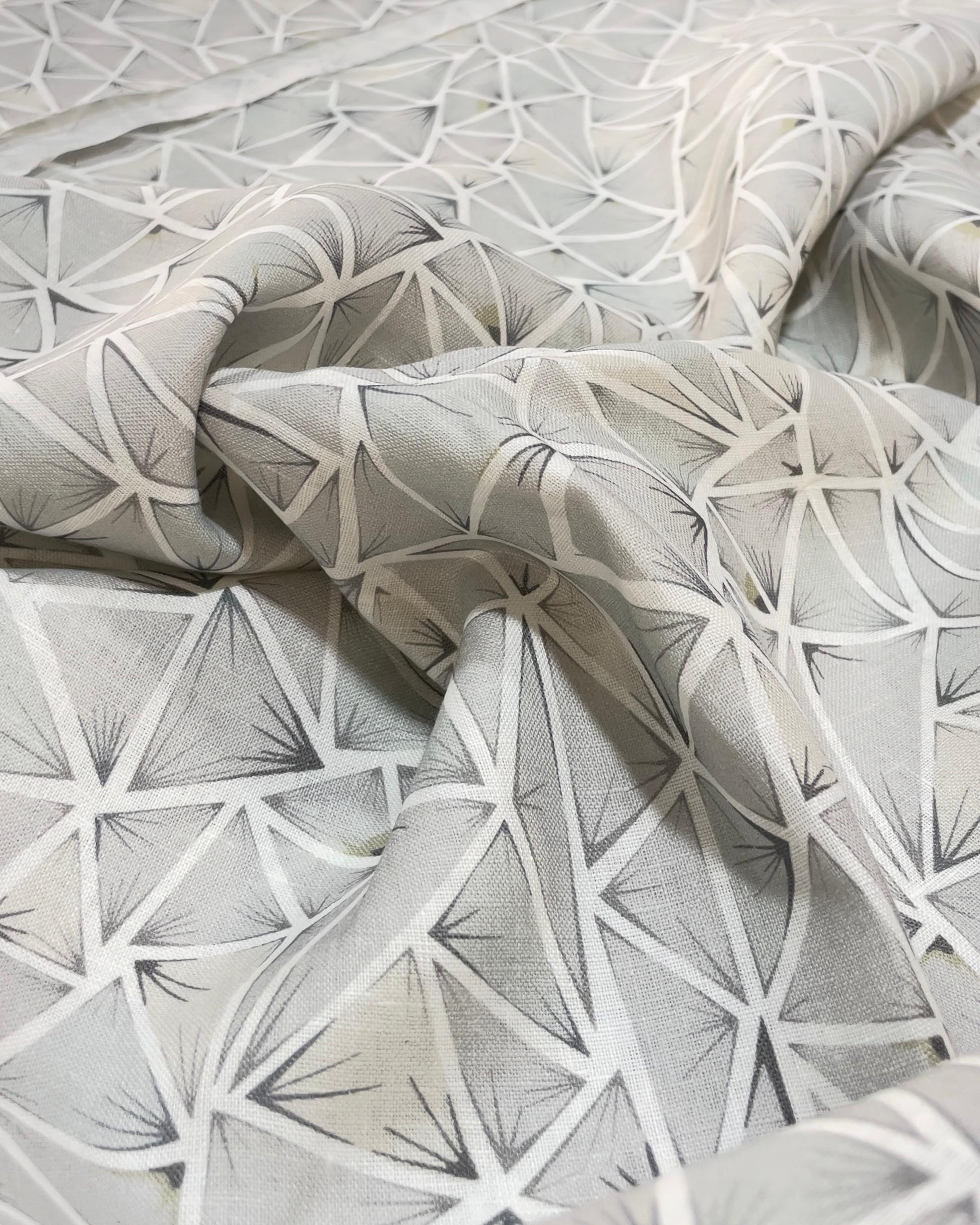 Grey White Geometric Allover Digital Printed - Dyed Premium Linen Fabric BC-ITN-630178 (NEW)