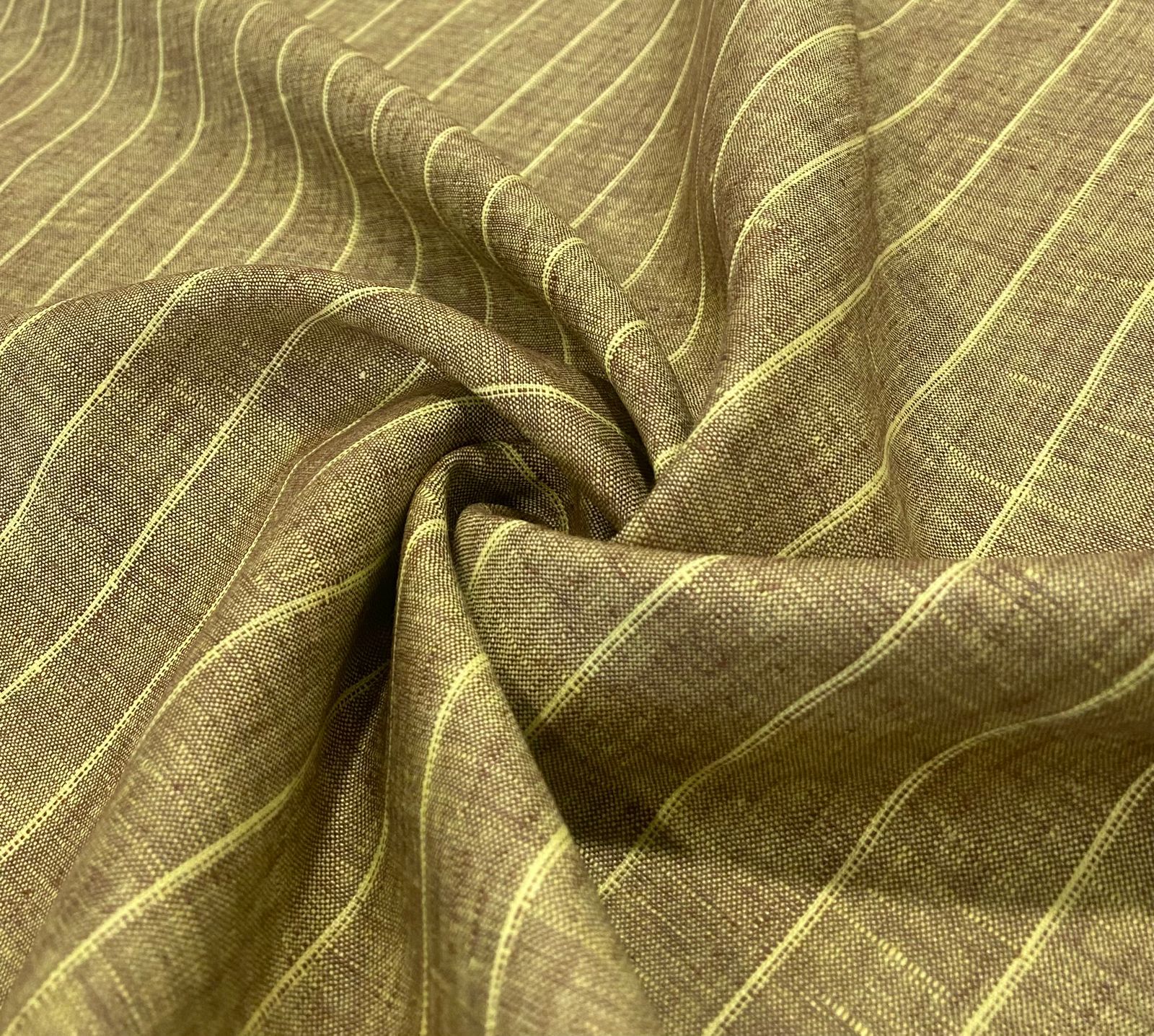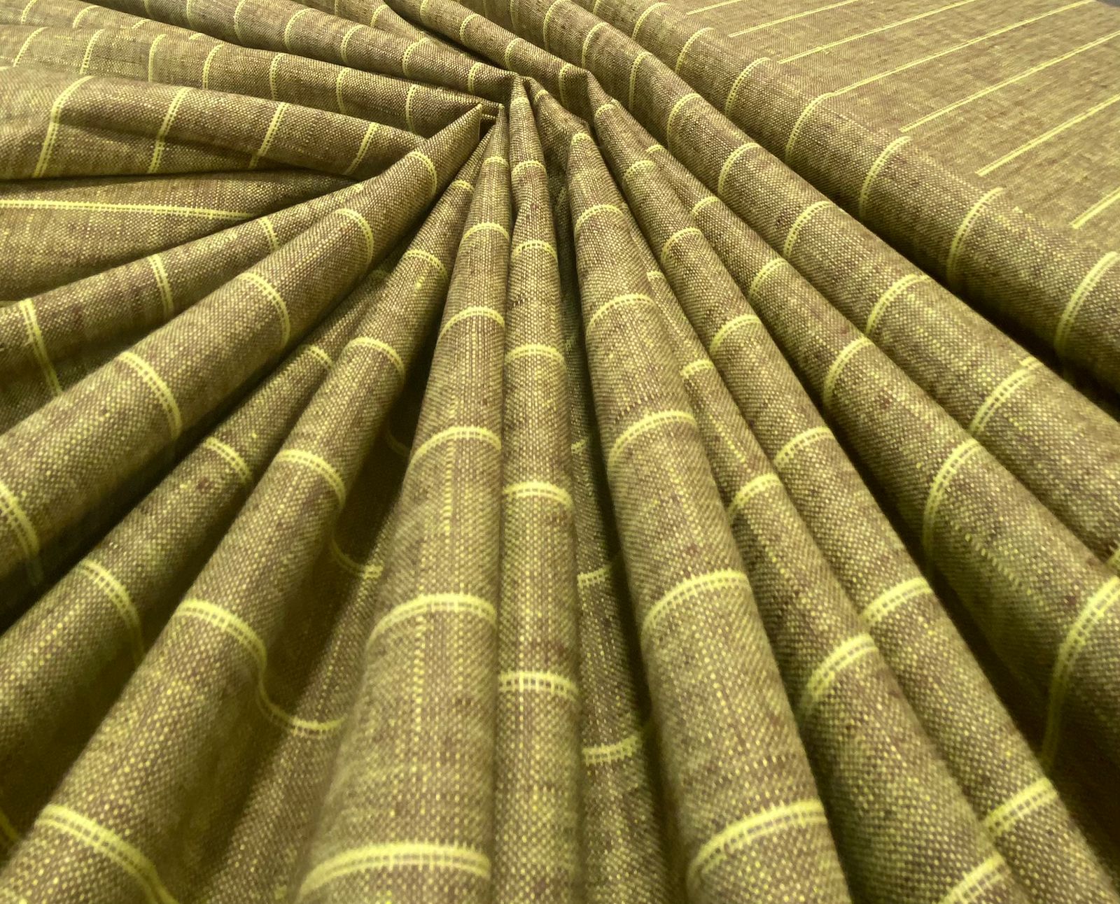 Golden Green Stripe - Premium Dyed Linen Fabric LCD-037