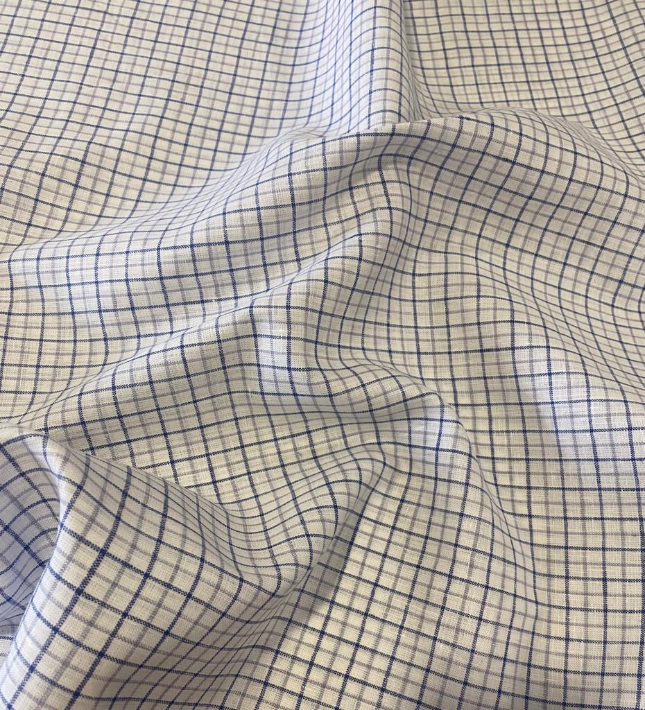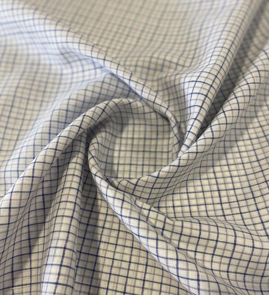White/Blue/Grey Checked - Dyed Premium Linen Fabric RL-614