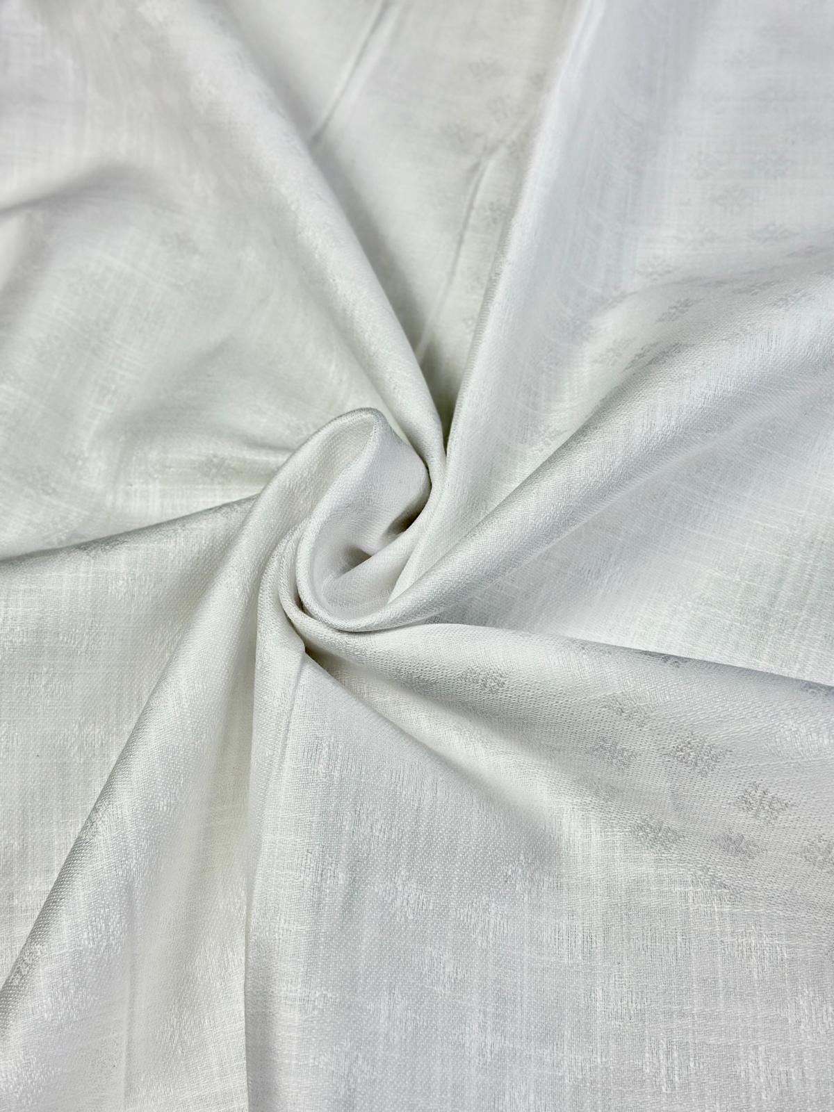 Men's Premium White Linen Cotton Self Design Shirting Fabric. Expertly crafted from a high-quality blend of breathable linen and soft cotton, this fabric offers the perfect balance of comfort, style, and durability — ideal for year-round wear. The subtle self-design weave introduces a refined texture that elevates classic white shirting, making it a versatile choice for both formal and casual occasions. Lightweight yet structured, it drapes beautifully and ensures a crisp, polished look all day long.