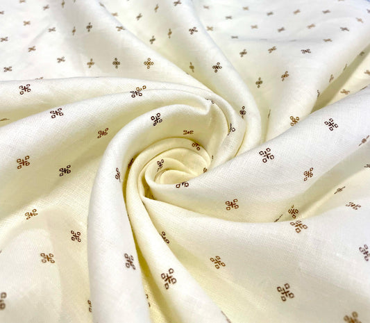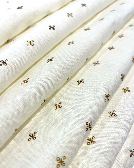 White Allover Printed- Dyed Premium Linen Fabric LT-GMP-037