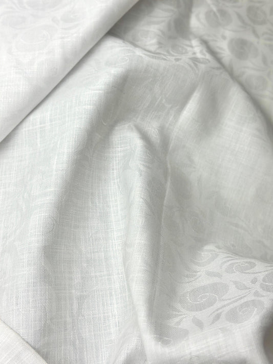White Floral Self-Design - Premium Linen Cotton Fabric BC-BJR-500106
