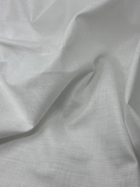 Men's Premium White Linen Cotton Self Design Shirting Fabric Crafted for the modern gentleman, our blends the crisp elegance of linen with the soft comfort of cotton. The subtle self-design adds a refined texture, making it ideal for formal and smart-casual shirts.