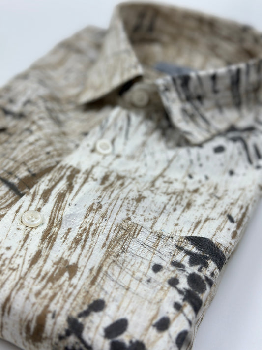 White Khaki Black Painted AOP Linen Shirt - Men's Linen Shirt