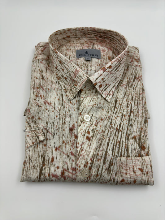 White Khaki Orange Painted AOP Linen Shirt - Men's Linen Shirt