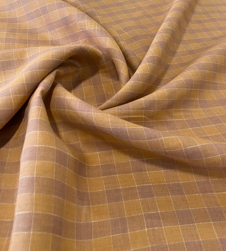 Chocolate Brown Checked - Dyed Premium Linen Fabric LFP-14827-102