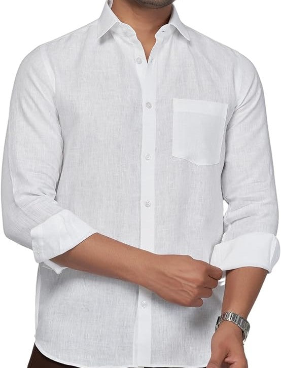 ESS-நான்கு பிரீமியம் வெள்ளை சாலிட் ரெகுலர் ஃபிட் லினென் ஷர்ட்