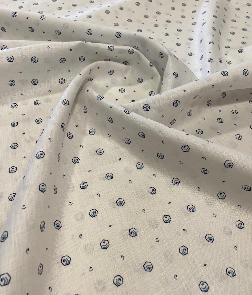 White Blue Printed Fabric - Dyed Premium Linen Fabric LS-055